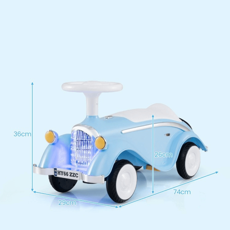 Vaikiška Mašinėlė Retro Stiliaus Su Garso Signalu Ir LED Žibintais, Mėlynas